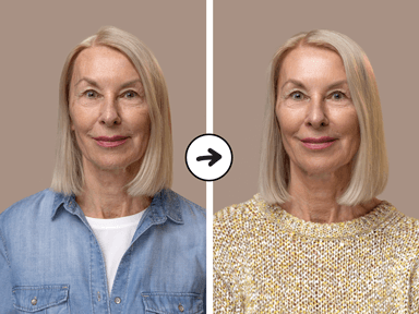 « Avant Glow25, je baissais d’abord la lumière de la salle de bain chaque matin, parce que je ne voulais plus me voir – les rides autour de la bouche et sur les joues étaient tout simplement trop profondes. Après à peine huit semaines, je retrouve enfin mon visage. Mon mari m’a dit récemment : « Tu as l’air reposée – qu’est-ce que tu fais de différent ? » »