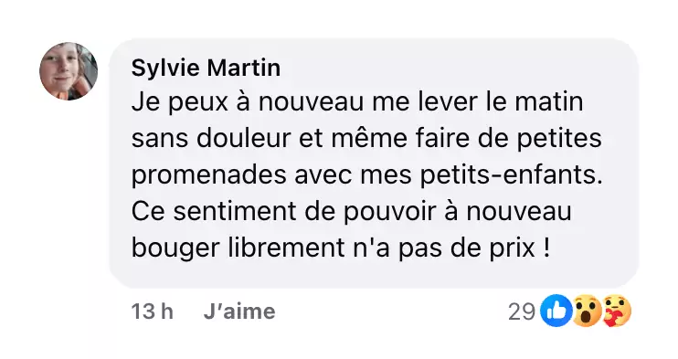 « Je peux à nouveau me lever le matin sans période de rodage – plus de genoux raides. »