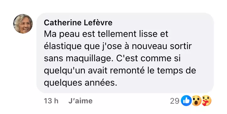 Ma peau semble nettement plus pulpeuse, plus rayonnante – même mon mari l’a remarqué (et ça, ça veut dire quelque chose !).