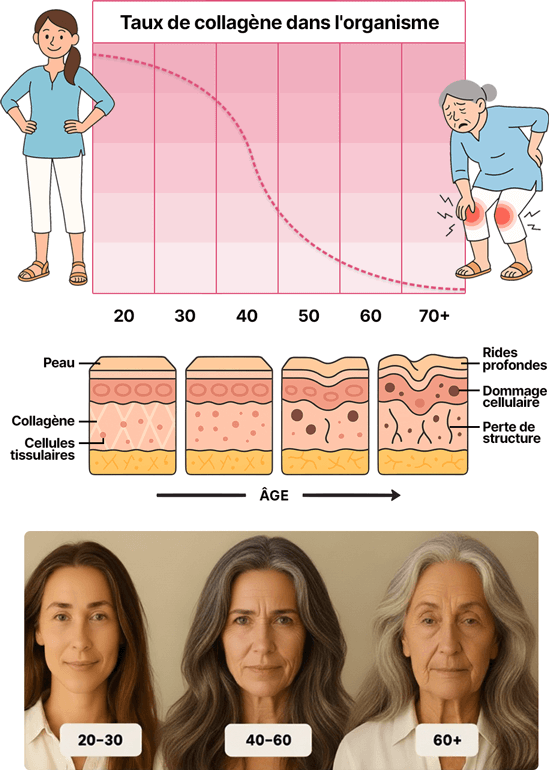 *Ces déclarations sont conformes aux études européennes sur les suppléments de collagène. Les résultats individuels peuvent varier en fonction de la physiologie personnelle et d’une utilisation cohérente selon le protocole.